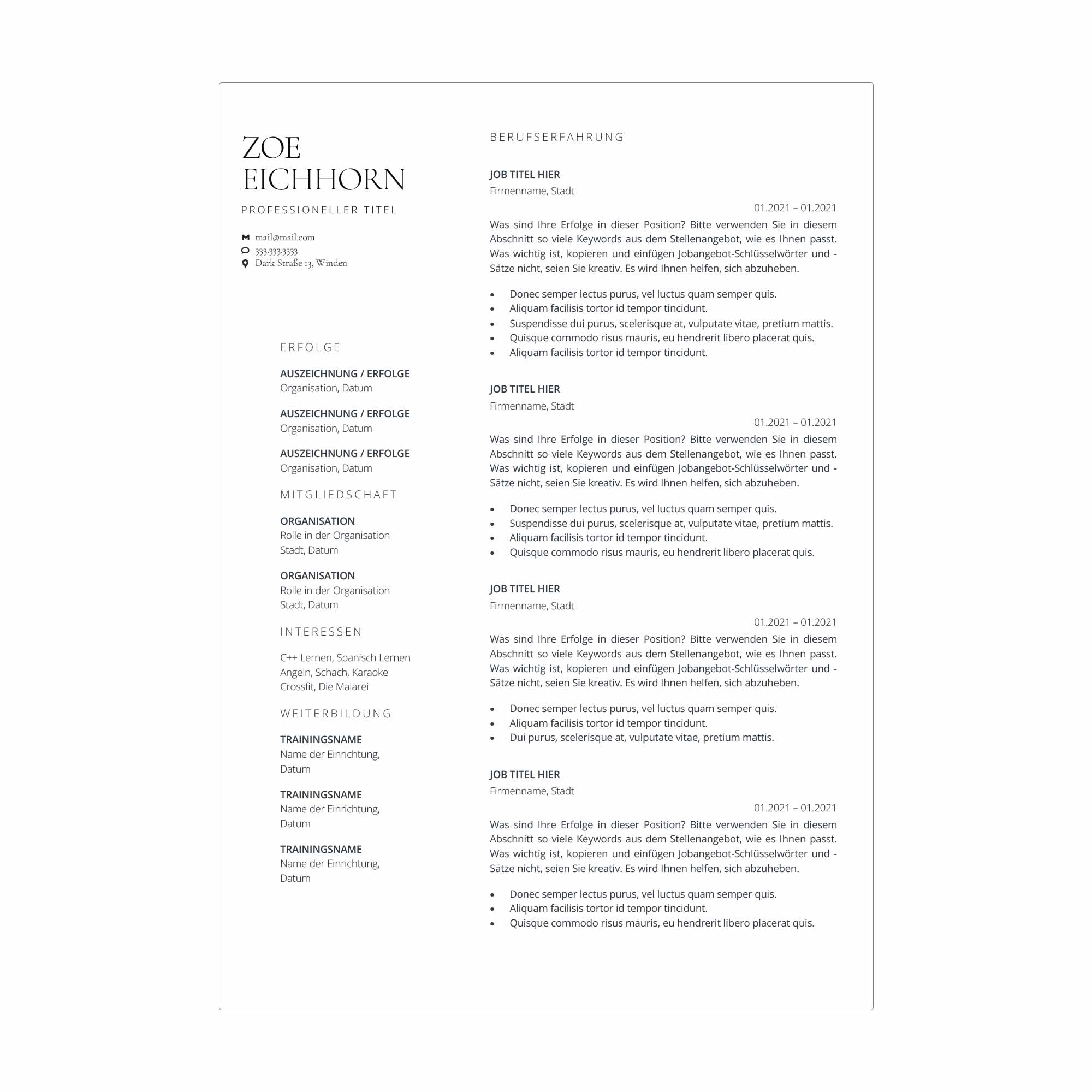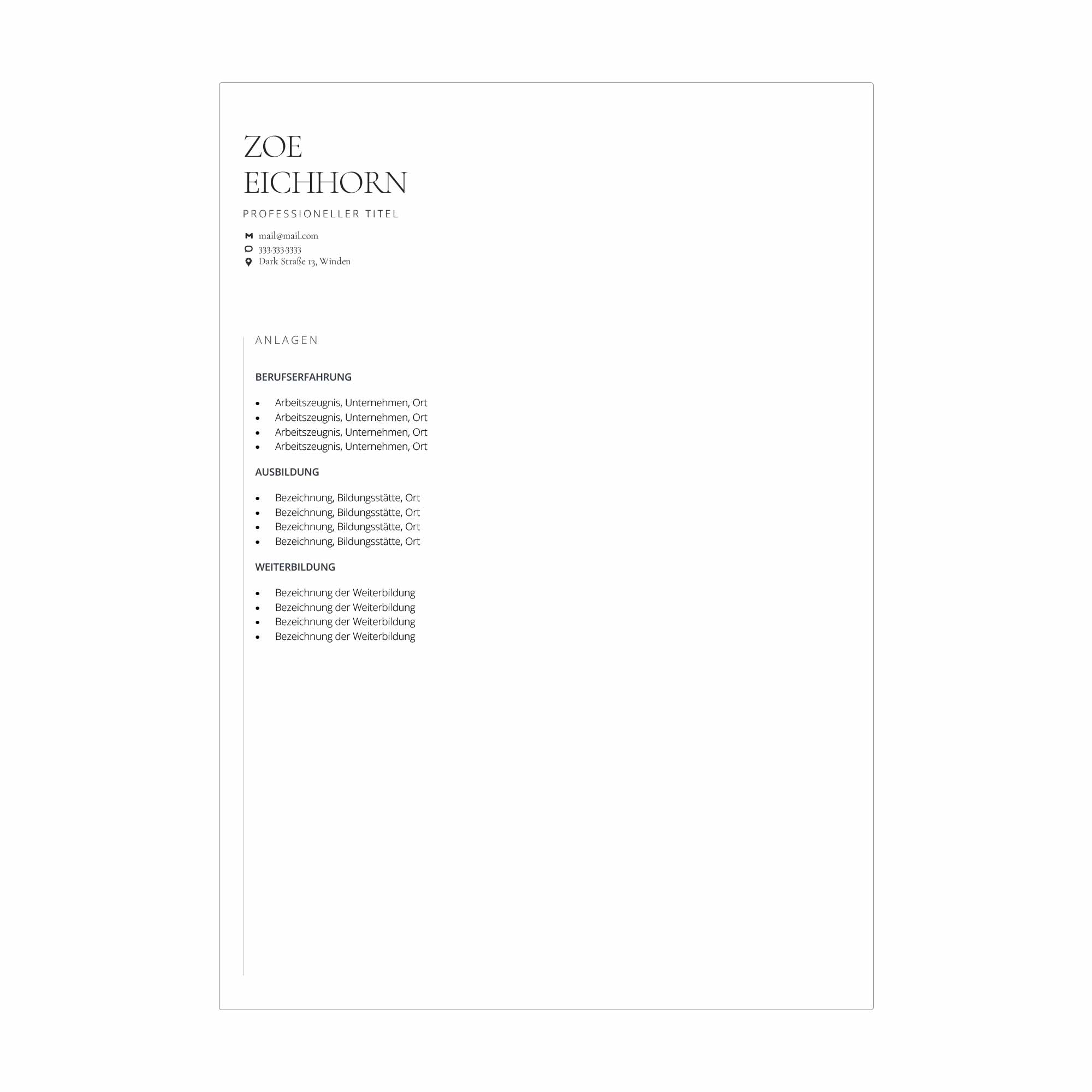 Lebenslauf Vorlage