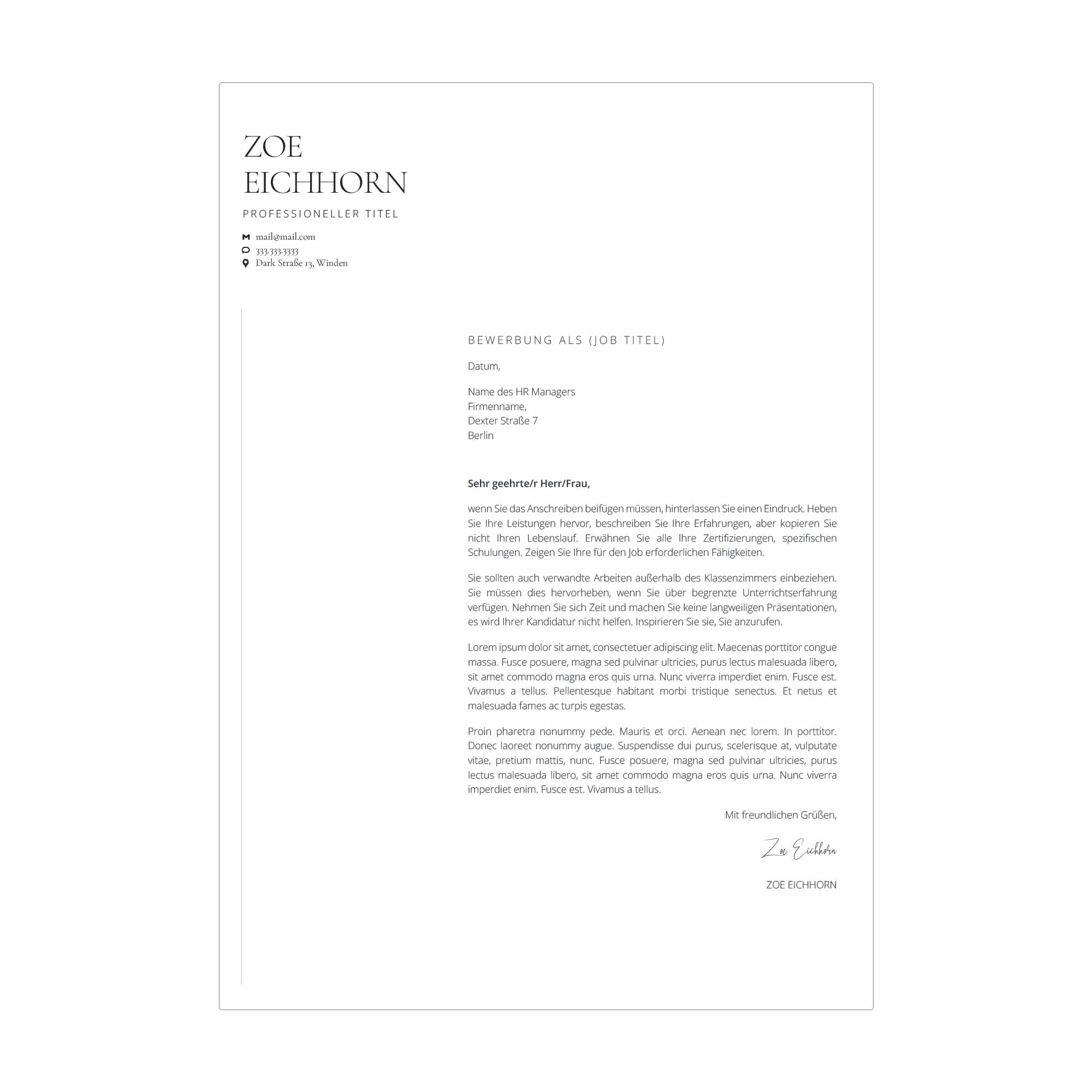 • Anschreiben Vorlage
