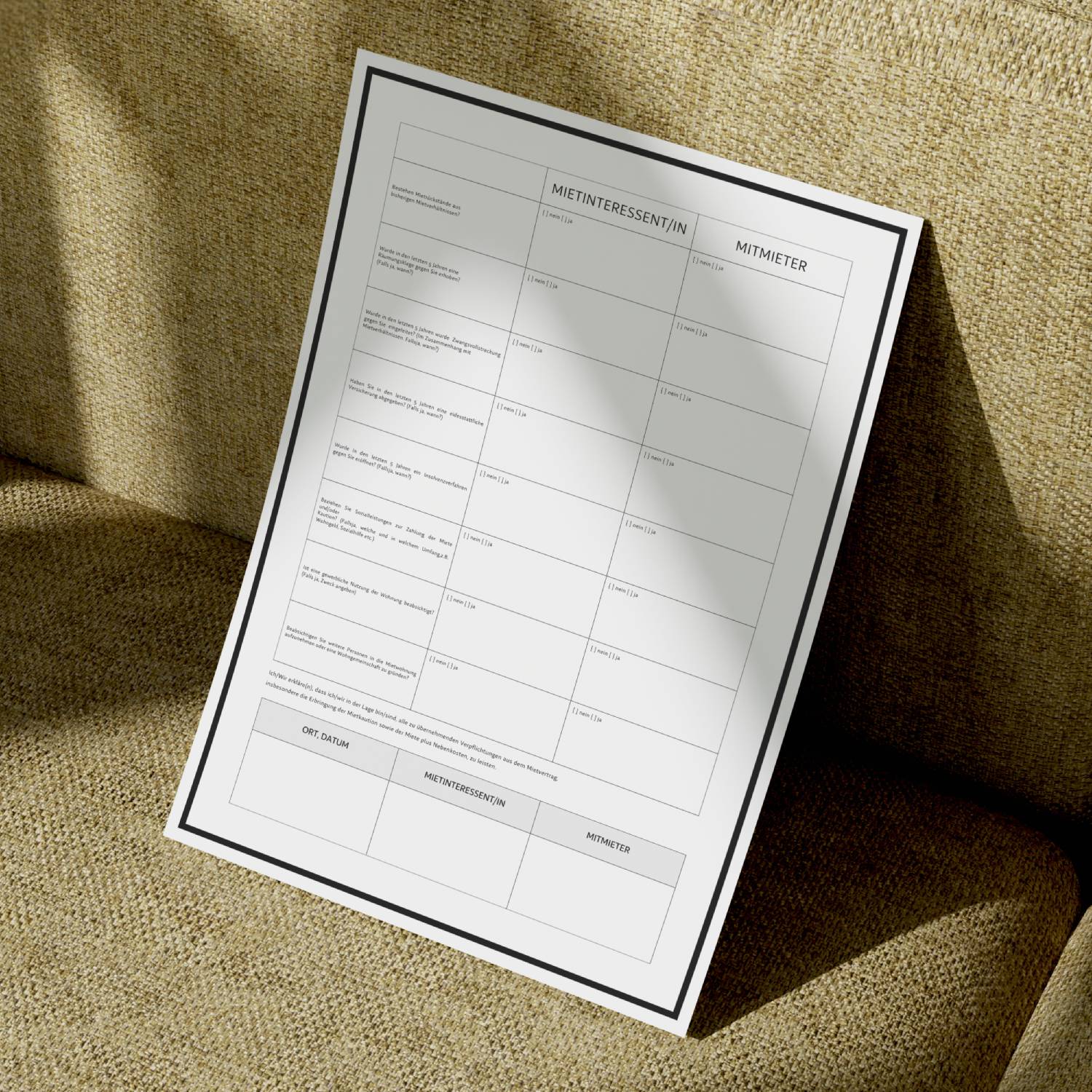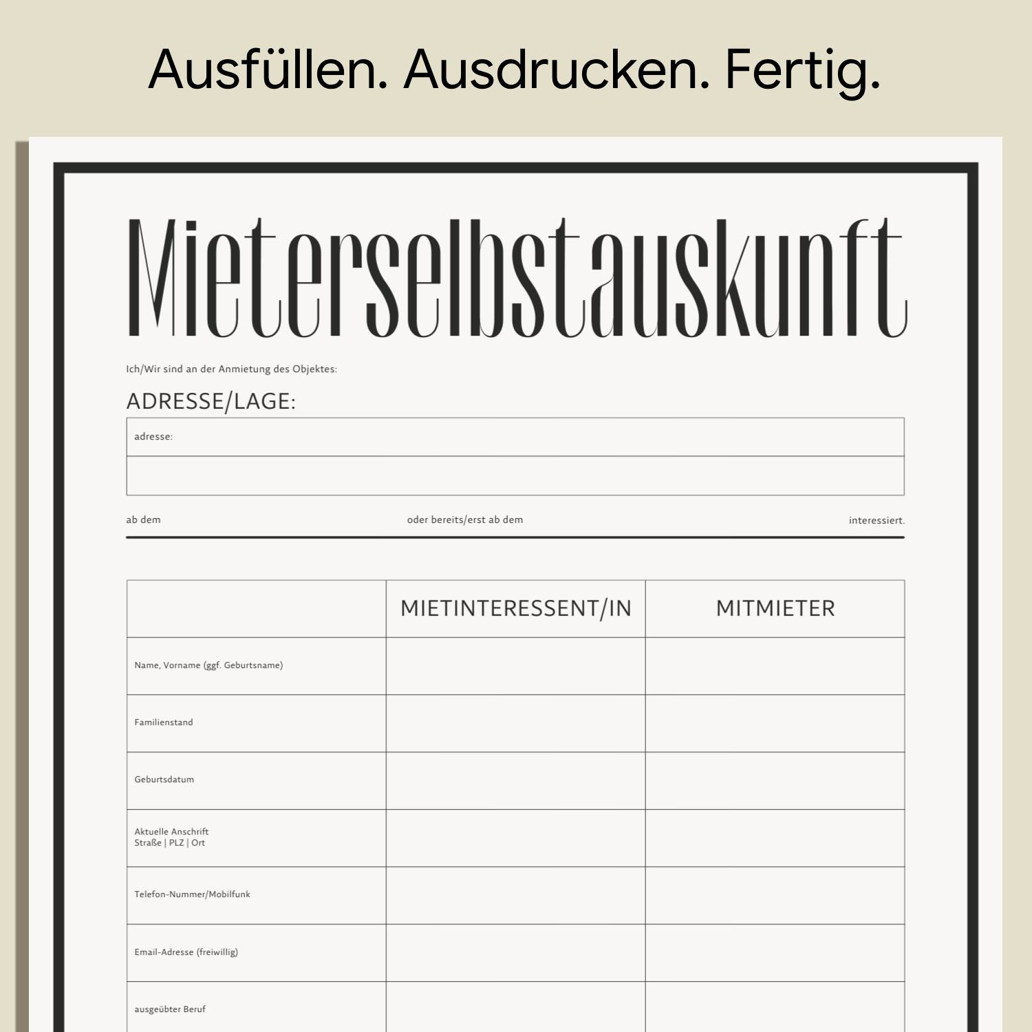 - Ausdrucken: Drucken Sie die Selbstauskunft Mieter in ausreichender Anzahl aus