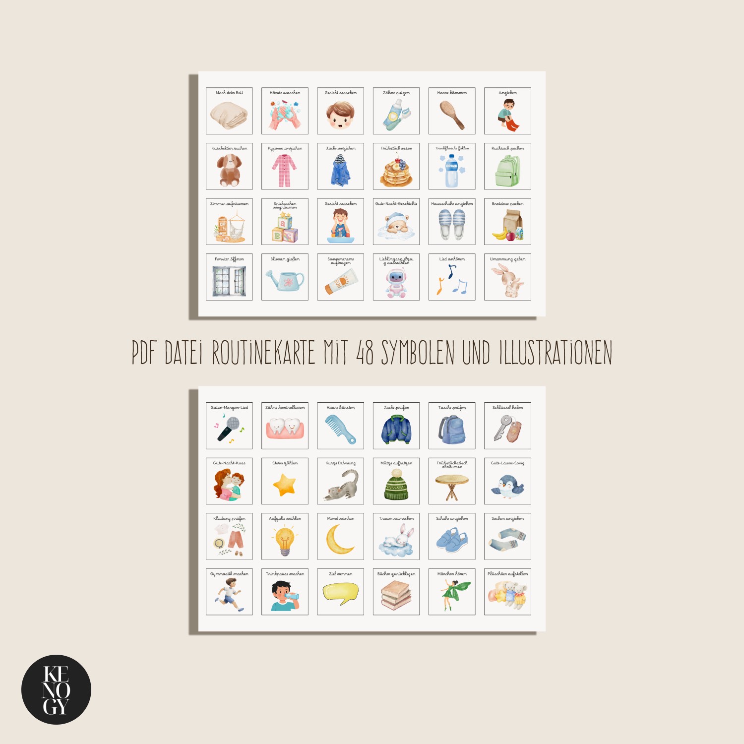 • 1x Routinekarte mit 48 klaren Symbolen und Illustrationen (PDF)