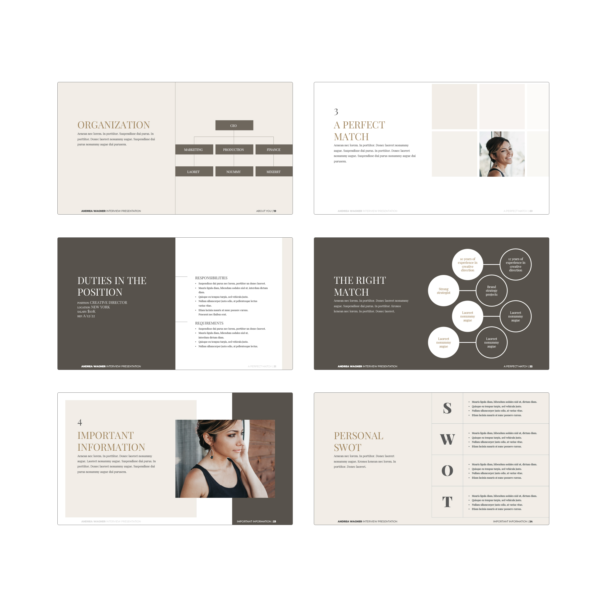 Ideal für ambitionierte Fachkräfte, die bei Bewerbungsgesprächen oder internen Karrierepräsentationen überzeugen wollen. Die Vorlage bietet moderne Layouts, ein stimmiges Farbsystem und über 450 Icons zur visuellen Unterstützung Ihrer Inhalte – alles anpassbar in PowerPoint.