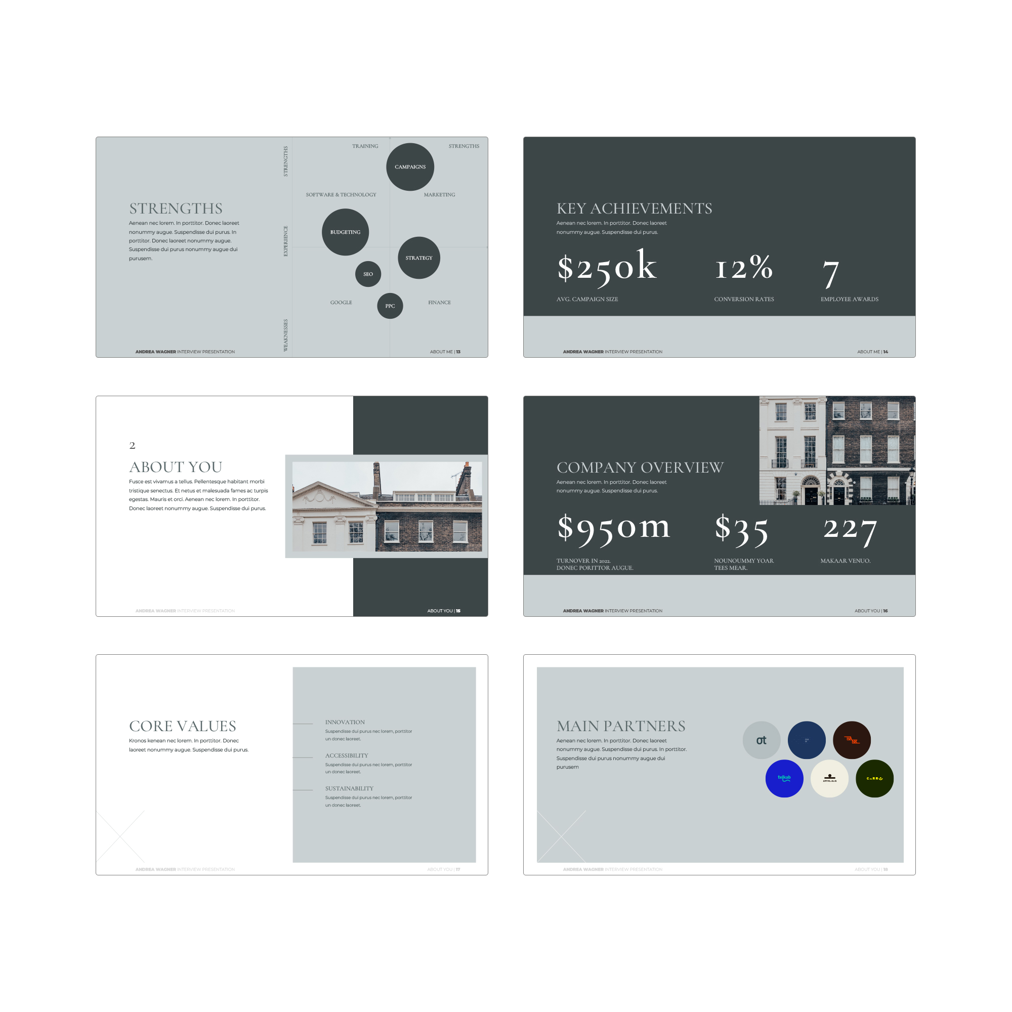 Dieses minimalistische Template kombiniert klares Design mit strategischem Storytelling – perfekt für Bewerber in Marketing, Kommunikation oder Design. Mit 27 durchdacht gestalteten Folien und flexiblen Anpassungsmöglichkeiten in PowerPoint präsentieren Sie Ihre Karriereziele präzise und überzeugend.