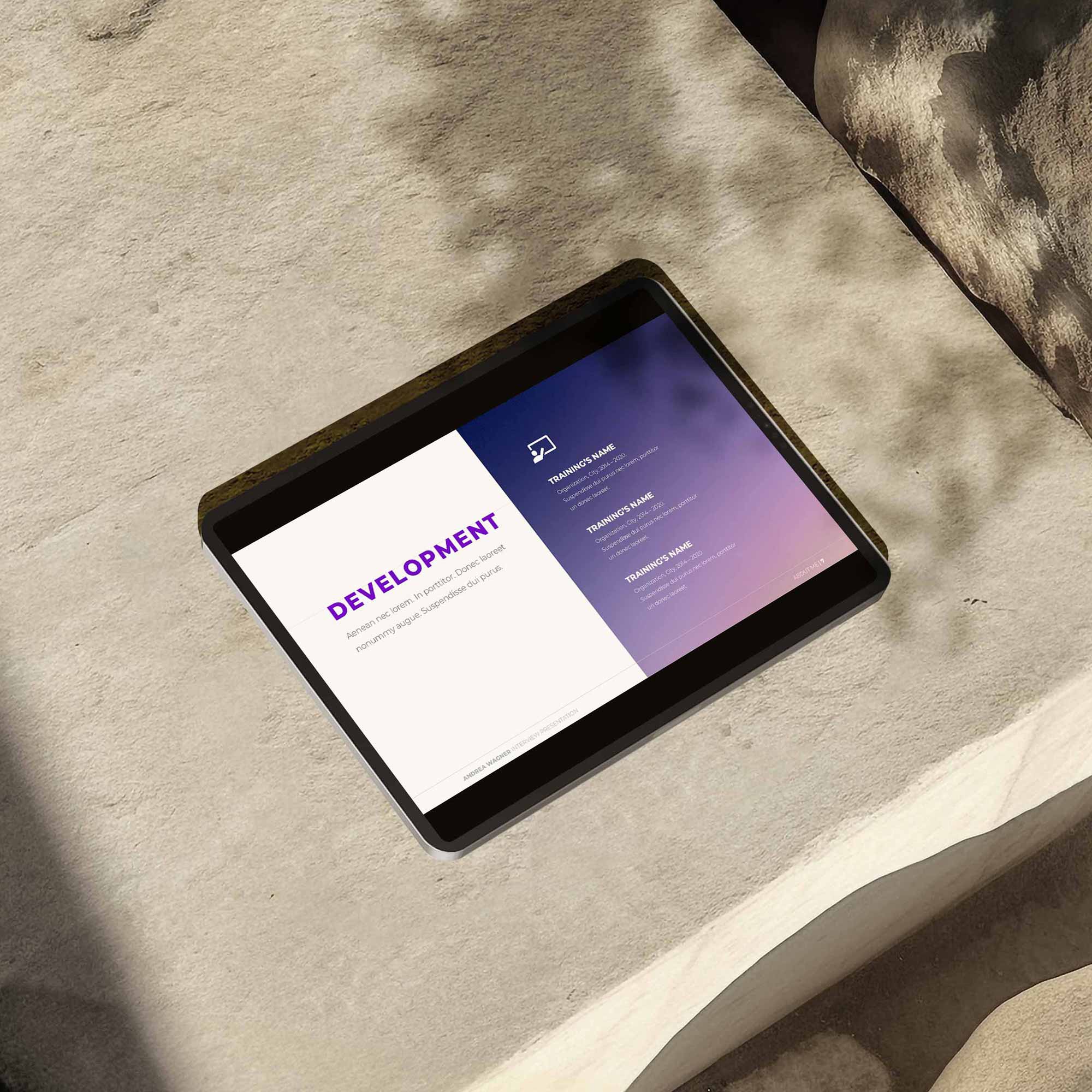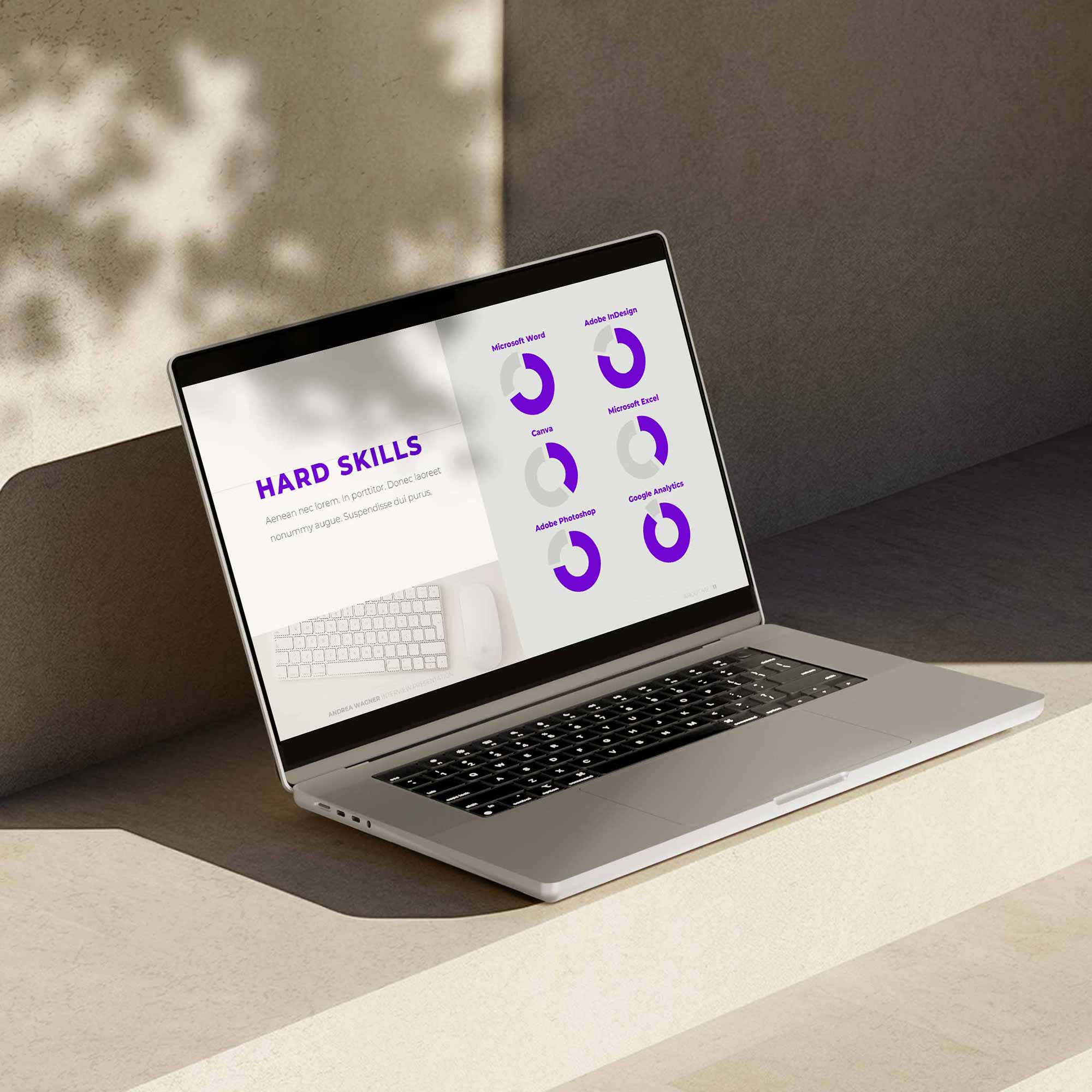 - 27 Folien (16:9, Full HD): Fertige Layouts für Einleitung, Kompetenzen, Projekterfolge, Ziele etc.