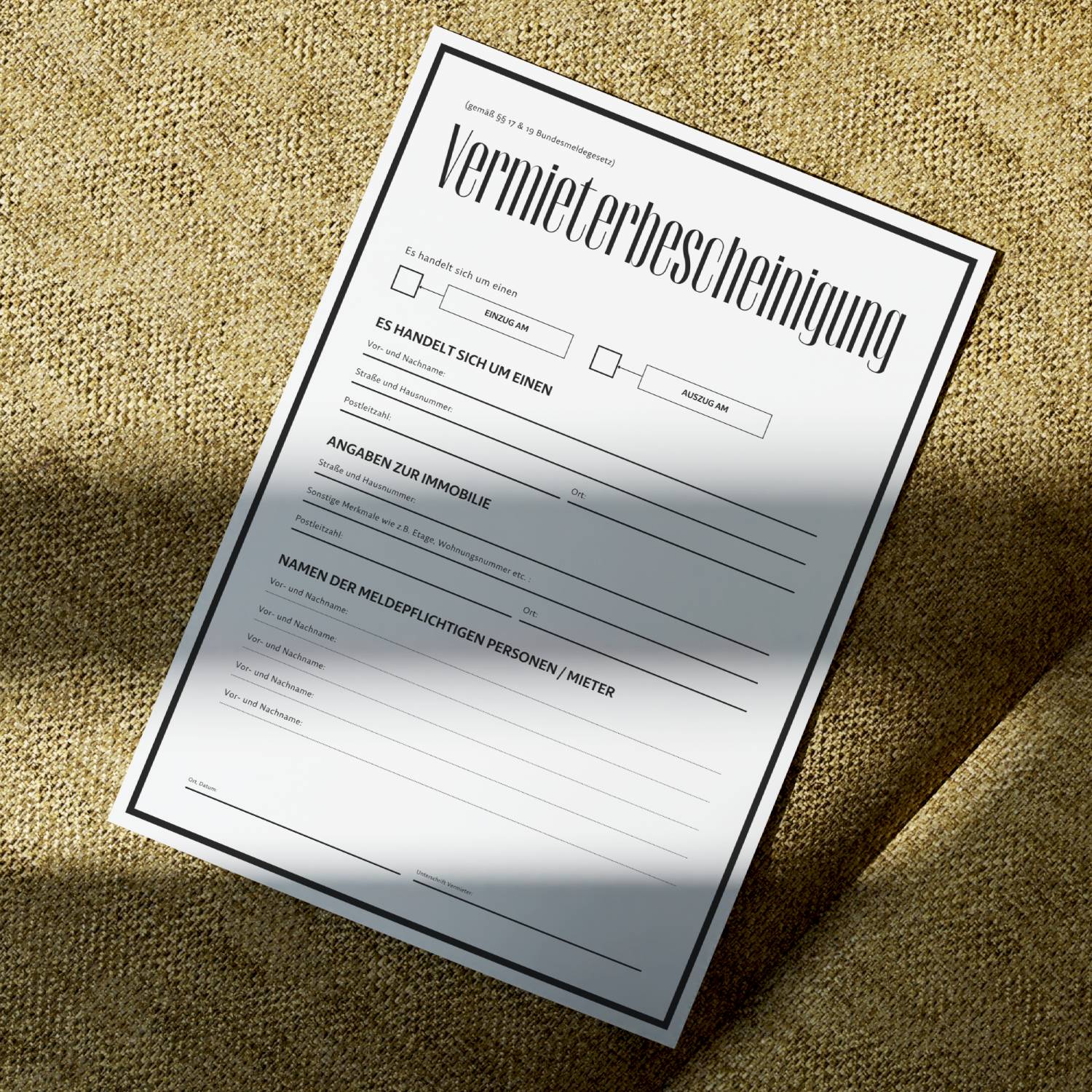 Aktualität: Unsere Vorlage berücksichtigt die aktuelle Rechtslage und eventuelle Änderungen im Bundesmeldegesetz.
